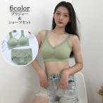 ブラショーツセット ノンワイヤー ブラジャー ショーツ セット 上下セット 下着 スポーツブラ パッド付き フルカップ 脇高