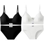 スポーツブラ 上下セット 下着 レディース ブラジャー ショーツセット 2枚 フリーサイズ(ホワイトブラック, Free Size)