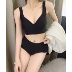 ブラジャー ショーツセット フロントリボン ノンワイヤーブラ&ショーツセット
