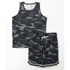パジャマ 速乾 上下セット ダブルフェイスメッシュ タンクトップ&バスケットパンツ バスパン(迷彩、レオパード) PRIMAL POINT