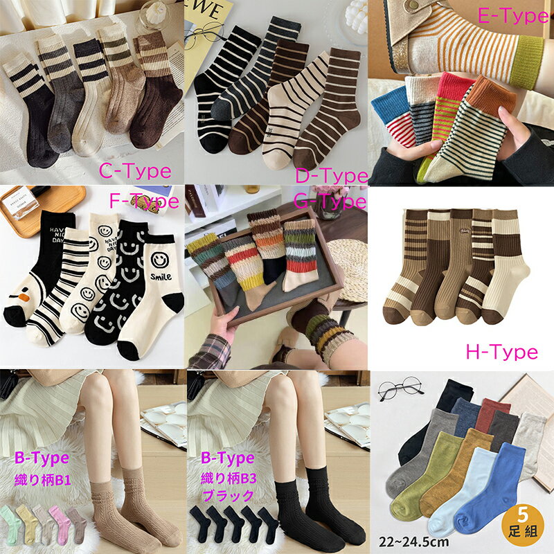 ソックス ハイソックス クルーソックス スクールソックス ネイビー 紺 5足組 6足組 セット 福袋 学校 通学 学生 女子高生 中学生 高校生