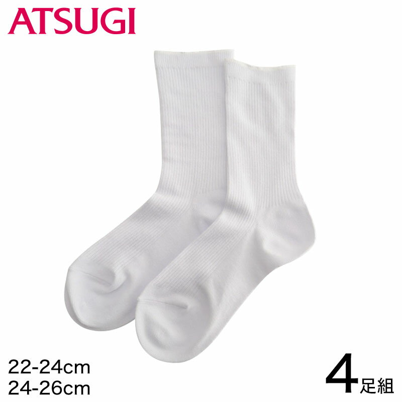 【要エントリー★12/5は抽選でポイントバック!】白ソックス 靴下 白 リブソックス ジャストクルー丈 4足組 22-24cm・24-26cm (クルーソックス ソックス アツギ 中学生 高校生 スクールソックス リブ まとめ買い レッグウェア)【在庫限り】