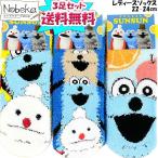 【送料無料】【3足組】パペットスンスン レディースソックス(もこもこ素材) 2025年秋冬柄 22-24cm / ルームソックス スニーカーソックス レディース靴下
