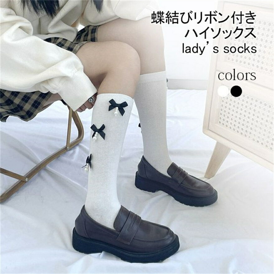 ソックス JK ハイソックス リボン レディース 靴下 コットン くつした ハイ リボン付きソックス ロリータ ゴスロリ 小物 くつ下 コットンソックス 伸縮 通気性