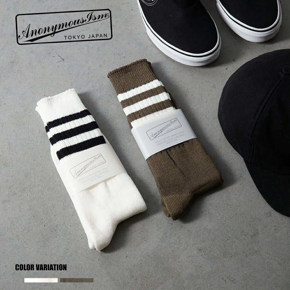 ★SALE価格10%OFF★【Anonymousism】3ラインハイクルー/全2色 ソックス ビジネス オフィス メンズ