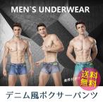 ボクサーパンツ リアルデニム風 ストレッチインナー 男性下着 ボクサーブリーフ プリント 通気性良い 快適 得トク2WEEKS セール