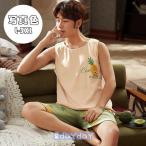 パジャマ メンズ 柔らかく軽い薄手の快適 タンクトップ+半ズボン パジャマ 上下セット 夏2点セット プリント ナイトウェア ルームウェア 紳士用 部屋着 寝間着