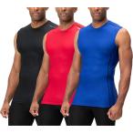 【並行輸入品】DEVOPS 2~3パック メンズ アスレチック 圧縮シャツ ノースリーブ US サイズ: Medium カラー: レッド 並行輸