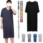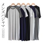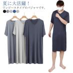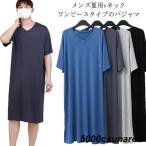パジャマ メンズ スリーパー ワンピース モダール 半袖 夏物 ルームウェア ネグリジェ ゆったり 大きいサイズ 無地 柔らかい 寝巻き クールネック