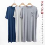メンズ 半袖 モダール スリーパー パジャマ ワンピース 夏物 薄手 ルームウェア ポケット付き ゆったり 大きいサイズ 部屋着 柔らかい 寝巻き 通