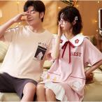 パジャマカップルペアルックKL綿100%夏ルームウェアペアパジャマ半袖パジャマペアルックお揃いレディースメンズネグリジェ