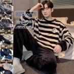 パジャマ メンズ 部屋着 長袖 ボア フリースパジャマ 上下セット スウェット ルームウェア プルオーバー もこもこ ふわふわ ボーダー柄 厚手 暖かい ゆったり