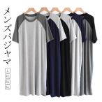 パジャマ パジャマ スリーパー 無地 ネグリジェ 半袖 ゆったり ルームウェア 夏物 モダール 大きいサイズ 柔らかい 寝巻き メンズ クールネック