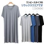 パジャマ メンズ ルームウエア ワンピース モダール ネグリジェ 半袖 紳士 男性 部屋着 ストレッチ 伸縮性 大きサイズ リラックス 在宅着 寝巻
