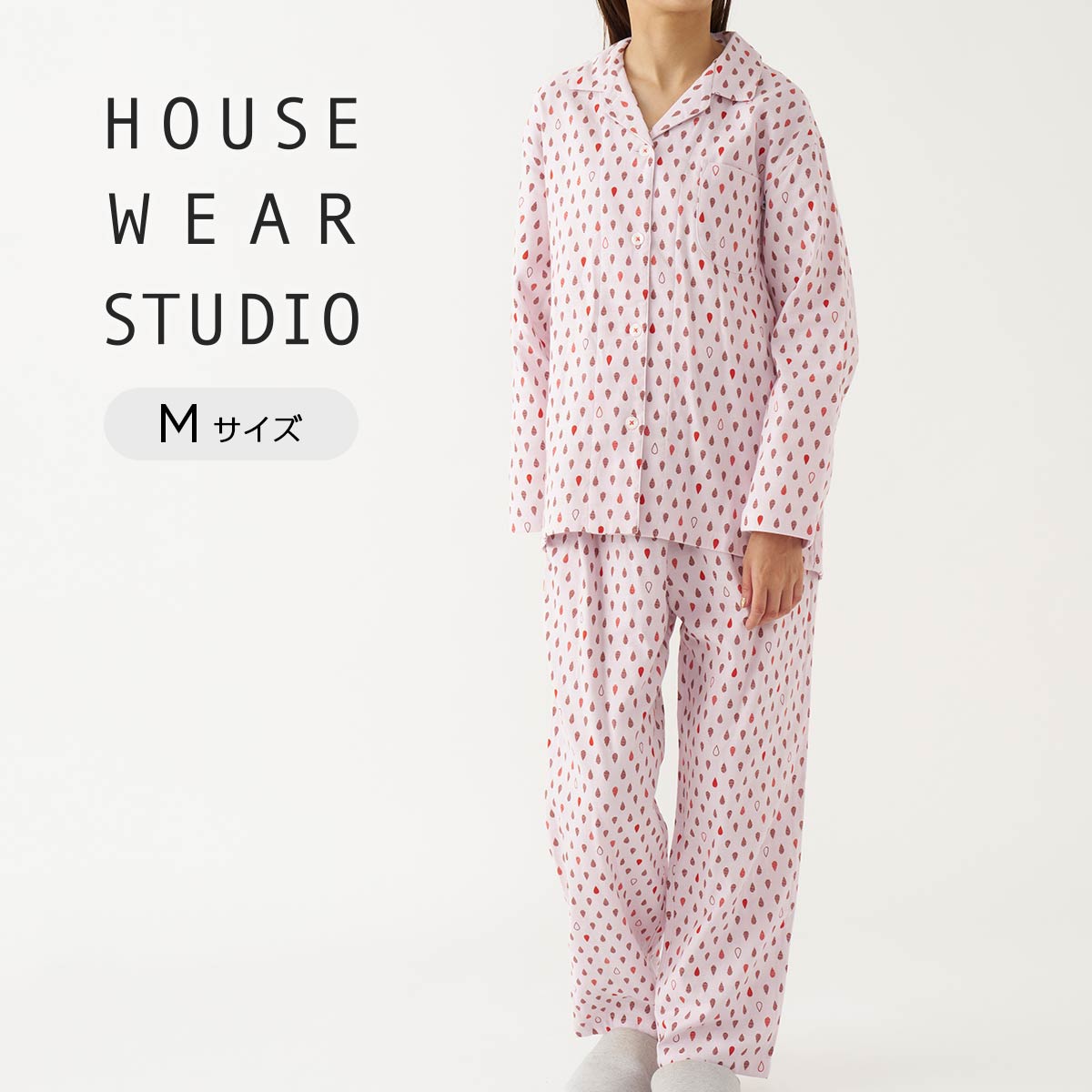 【Mサイズ】HOUSE WEAR STUDIO ハウスウェアスタジオ 綿100% 2重ガーゼ 起毛プリント レインドロップ 前ボタン 長袖 長丈パンツ パジャマ レディース プレゼント 無料ラッピング 73374172