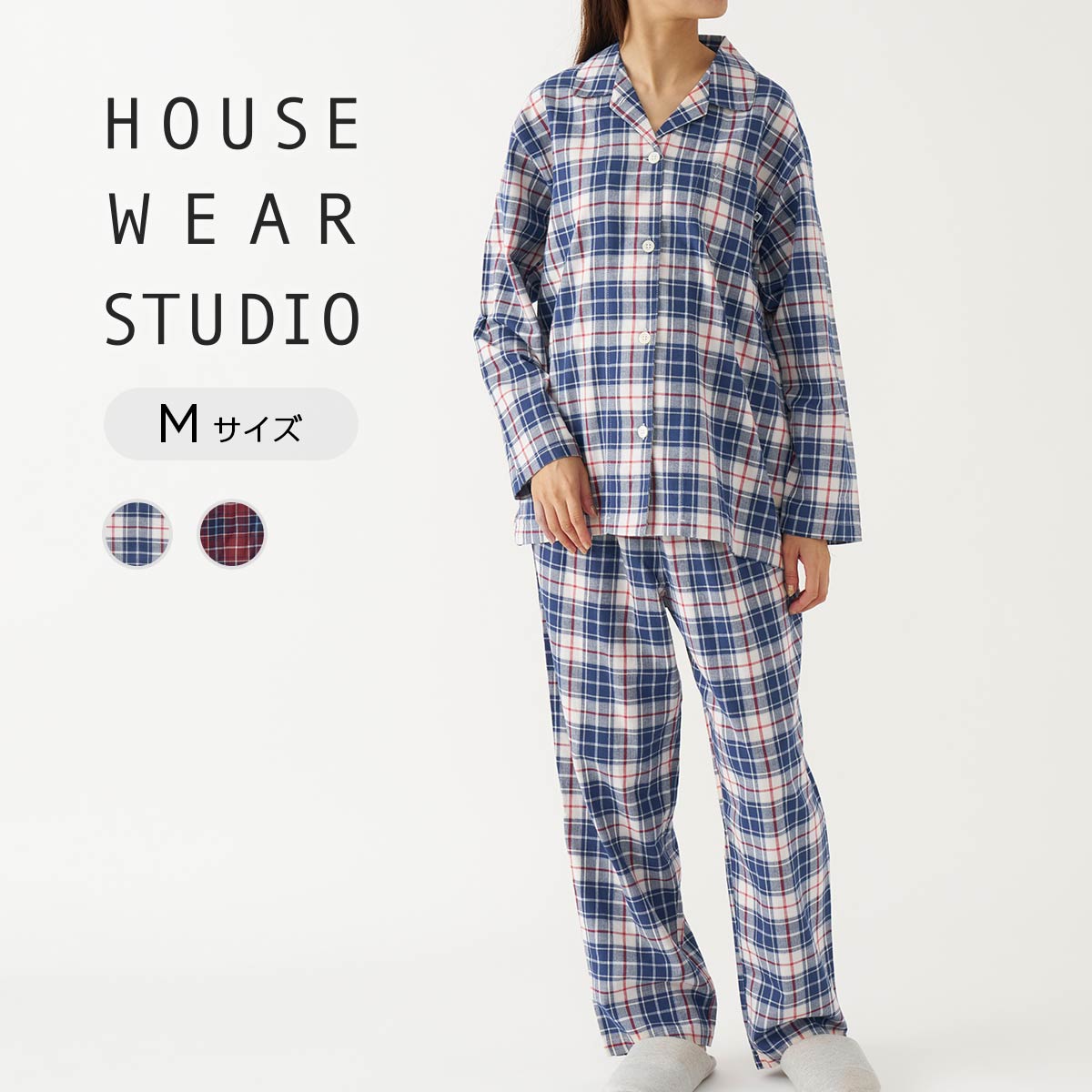 【Mサイズ】HOUSE WEAR STUDIO ハウスウェアスタジオ 綿100% ツイル起毛 ヘリンボーンチェック 前ボタン 長袖 長丈パンツ パジャマ レディース プレゼント 無料ラッピング 73374212