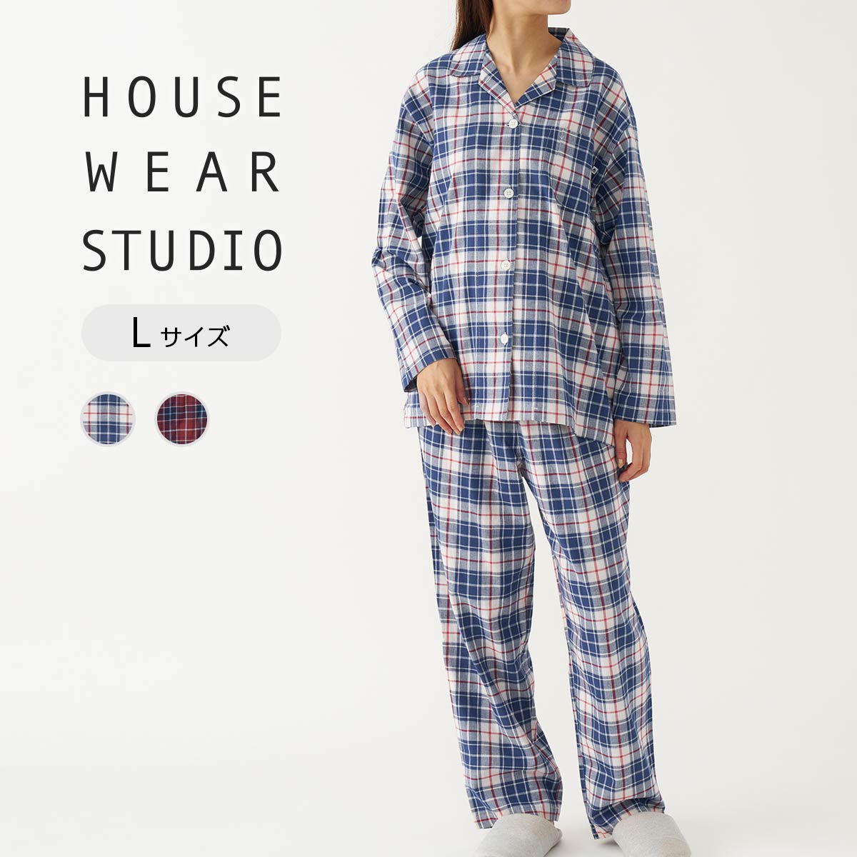 【Lサイズ】HOUSE WEAR STUDIO ハウスウェアスタジオ 綿100% ツイル起毛 ヘリンボーンチェック 前ボタン 長袖 長丈パンツ パジャマ レディース プレゼント 無料ラッピング 73374213