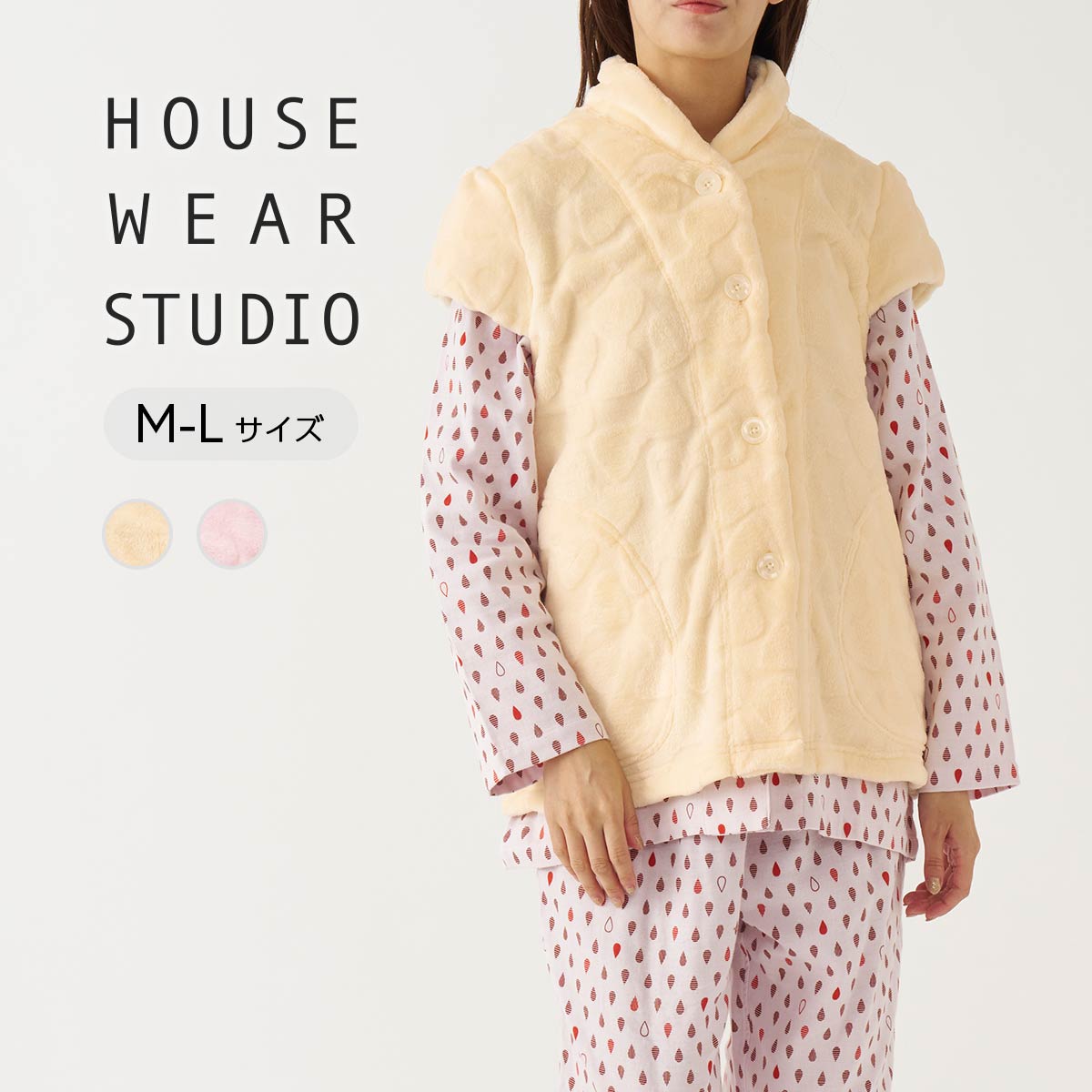 HOUSE WEAR STUDIO ハウスウェアスタジオ ふわふわ暖かい シルキーマイヤー ベスト 前ボタン リボン柄 レディース 73374250