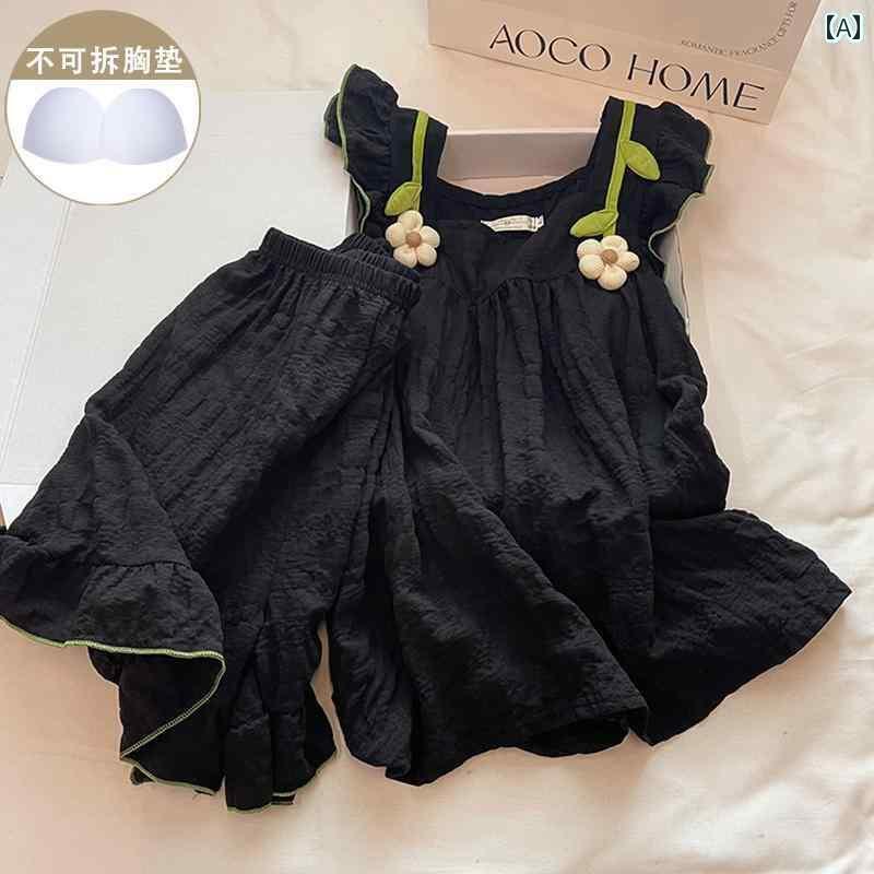 インナー レース キャミソール 韓国 レースアップ ブラパッド パジャマ レディース 夏 コットン ブラック フラワー セクシー サスペンダー カジュアル スモール ハウスウェア