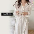 ガウン バスローブ レディース 軽量 速乾 大きいサイズあり 無地 フリル 長袖 秋冬 ルームウェア 部屋着 ロング かわいい ナイトウェア パジャマ ネグリジ