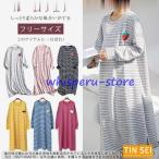 ルームワンピース 長袖 ルームウェア ネグリジェ パジャマ バスローブ ロング丈 ボーダー柄 カジュアル ゆったり 部屋着 大人 おしゃれ 可愛い プレゼント