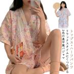 ナイトウエア 温泉 パジャマ 浴衣 寝巻き 甚平 甚平 レディース 部屋着 ルームウェア バスローブ 薄手 前開き ガウンパジャマ 五分袖 肌に優しい