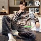 メンズ 上下セット ルームウェア ふわふわ もこもこ パジャマ 冬 ストライプ柄 長袖 トップス セットアップ おうち時間 ナイトガウン 着る毛布 L 2L 3L 4L