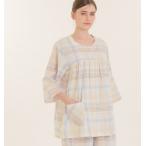 ナルエー パジャマ ダブルガーゼ 綿100% コットン100% 7部袖 9分丈 春夏 マドラスチェック ブルー 22409 スポットセール