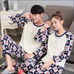 ペア パジャマ メンズ 春 秋 冬 レディース カップル 長袖 上下セット ペアルック 可愛い ふわふわ あったかい 厚手 部屋着 寝巻
