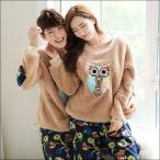 ペア パジャマ 秋冬 上下セット セットアップ もこもこ メンズ レディース パジャマ ペア プルオーバー マイクロファイバー 裏起毛 厚手 動物 暖