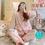 冬パジャマ レディース 秋冬 ルームウェア ゆったり 上下セット 部屋着 暖かい 家着 もこもこ 可愛い 女性 2点セット 婦人パジャマ