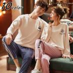 ペアパジャマ カップル パジャマ 綿100% 秋秋ルームウェア ペアパジャマ長袖 厚手 ペアパジャマ お揃い レディース部屋着上下セット メンズ パジャマ 卒業式