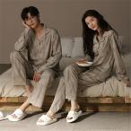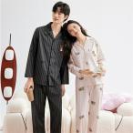 ペア パジャマ 長袖 男女2着 セット 綿100% 前開き 柔らかい ゆったり カップル 春 シンプル 長袖トップス ロングパンツ 高級 ルームウェア 春秋 夫婦 ギフト