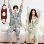 ペア パジャマ 長袖 男女2着 セット ストライプ ゆったり 前開き セットアップ カップル 春 秋 長袖トップス ロングパンツ ルームウェア 綿 ポリエステル 春秋
