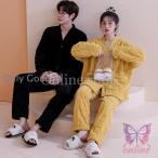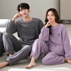 カップルパジャマ ペアパジャマ 冬 裏起毛 フワモコパジャマ 部屋着 寝巻き ルームウェア モコモコ 上下セット 厚手 長袖 あったか サンゴネル