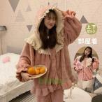 パジャマ 寝巻き パーカー セットアップ レディース 毛布 ルームウェア 冬 部屋着 裏起毛 厚手 あったか 可愛い モコモコ 長袖 帽付き 帽無し
