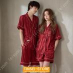 シルク パジャマセット レディース メンズ 部屋着 刺繍入り オシャレ ナイトウェア 寝巻き パジャマ 上下セット ペア パジャマ ブレンド 半袖 ショートパンツ