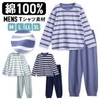 パジャマ メンズ 綿100% 長袖 春 夏 柔らかく軽い薄手の快適Tシャツ 上下セット ボーダー M L LL 3L 部屋着 ルームウェア おそろい