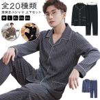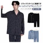 パジャマ メンズ 長袖 前開き 綿 薄手 上下セット 寝巻き ルームウェア 春夏 無地 ストライプ テーラー襟 父の日 プレゼント 紳士 男性 男の子