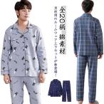綿 寝巻き ルームウエア 上下セット メンズ パジャマ 春 チェック柄 前開きパジャマ 秋 前開き パジャマ 長袖 長ズボン ナイトウェア 入院 セッ