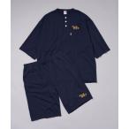 パジャマ 速乾ドライメッシュ加工 アメカジプリント半袖Tシャツとショーツのセットアップ メンズ レディース