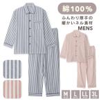 パジャマ メンズ 綿100% 長袖 冬 前開き ボタン ネル起毛 ストライプ柄 ブルー グリーン M L LL おそろい