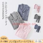パジャマ メンズ&レディース 長袖 薄手 ガーゼパジャマ 前開き 夏春 ペア