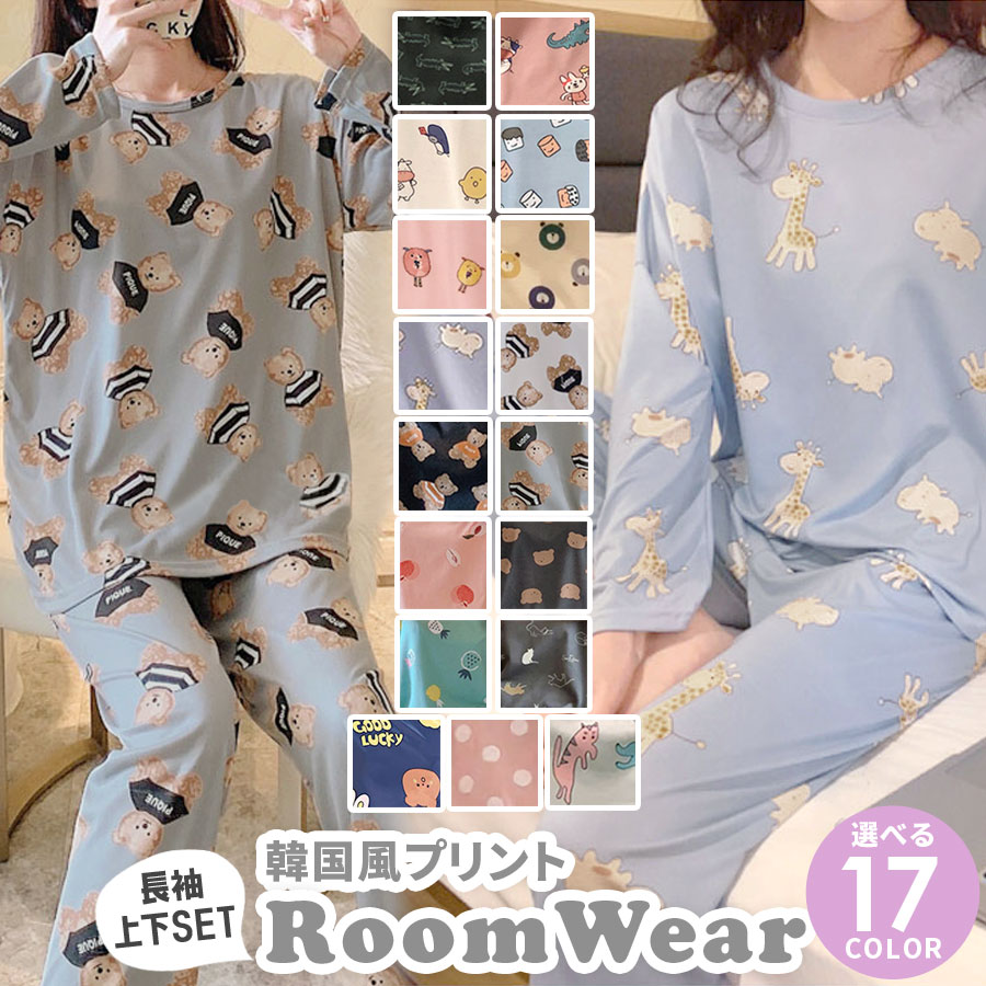 ルームウェア レディース 可愛い 長袖 上下セット 春秋 ルームパンツ トップス セットアップ ゆったり パジャマ 部屋着 寝巻き