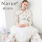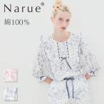 ナルエー公式 パジャマ ルームウェア レディース 春 夏 綿100% ガーゼ ネイビー ピンク M L 40/ダブルガーゼプティフレーズフリルパジャマ 26-11417