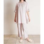 パジャマ ルームウェア 「ONLINE限定」「UNISEX」エアリーモコプレイフルDOGジャガードプルオーバー&ボーダーロングパンツセット レディース