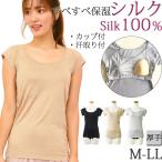 シルク100% カップ付き インナー 半袖 レディース フレンチ袖 シャツ M〜LL シルク ブラトップ Tシャツ カップ付インナー ゆったり 下着 肌着 女性 (送料無料)