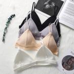 送料無料 三角ブラ ノンワイヤー ブラジャー レディース インナー 単品 下着 3/4カップ 無地 細ストラップ 肩紐細め セクシー シンプル おしゃれ 女性用 婦人用