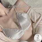 三角ブラ ノンワイヤーブラ ブラジャー レディース 女性用 インナー 下着 三角ブラ スカラップ レース サテン調 光沢感 セクシー かわいい エレガ