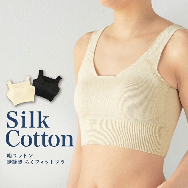 【ふるさと納税】シルクふぁみりぃ★無縫製 肌側シルク天然素材のらくフィットブラ&パッド/シルク ホールガーメント フリーサイズ 優しい 柔らかい 快適 保温 母の日 プレゼント